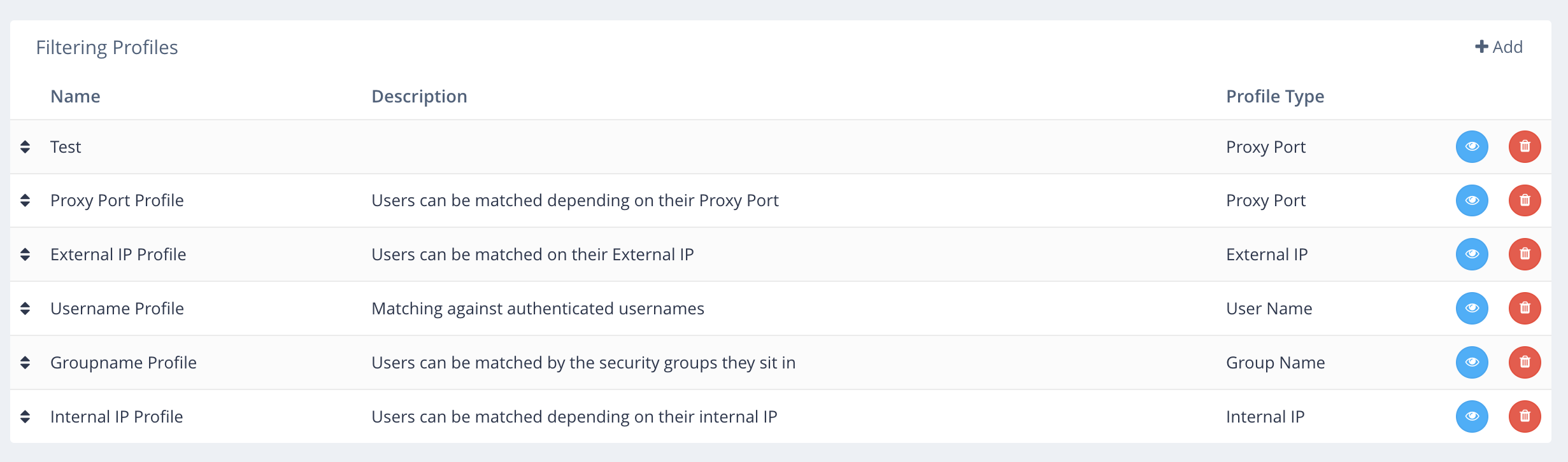 Filtering profiles are split into two types: Overriding profiles and the Default profile.