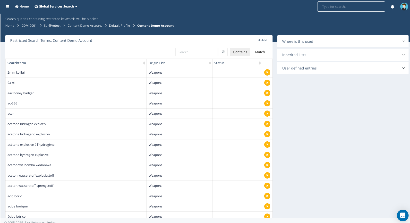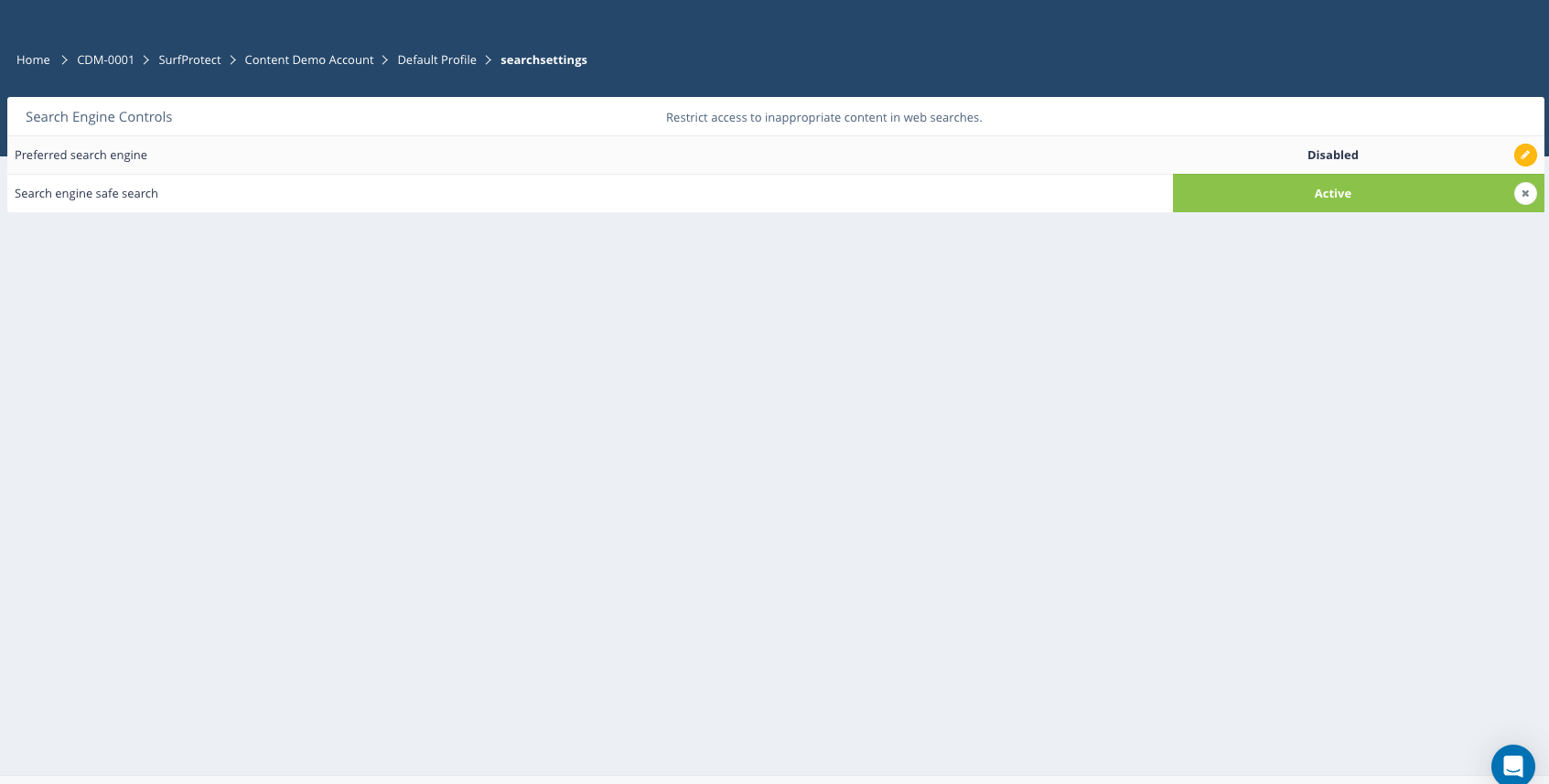 This can be accessed via hovering over the ‘Restricted Search Terms’ section on the SurfProtect profile