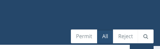 The first three of these options are broad, quick filters which can be applied to the displayed results. By default, the ‘All’ filter is selected, which shows every request that has been filtered. Switching to the ‘Permit’ or ‘Reject’ filters shows only results which have either a Permitted or Rejected status.