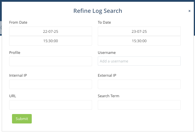 This allows you to filter results down to specific time periods, internal or external IPs, users, etc. The ‘All’, ‘Permit’ and ‘Reject’ options can be enabled, which will limit the results further to these specific statuses.